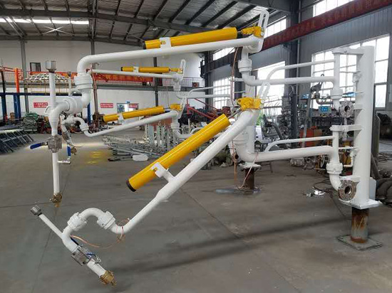 鶴管的安裝方法:發(fā)油臺與鶴管連接處配有相應(yīng)的標(biāo)準(zhǔn)法蘭,并保證基礎(chǔ)法蘭牢固可靠,法蘭盤距地面高度為2.1~2.2米,鶴管倒裝時(shí)法蘭盤距地面高度為2.7~2.8米。安裝過程中,每個(gè)法蘭面必須輕清潔干凈,有密封槽的必須用黃油將O形圈裝好后再連接在每個(gè)銷軸轉(zhuǎn)動(dòng)部分及彈簧平衡器安裝使用前必須涂潤滑機(jī)油。<了解詳情>