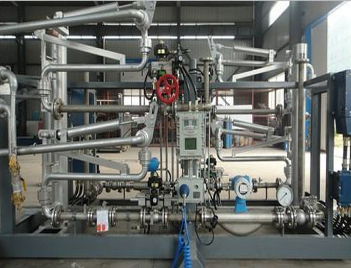 油品定量裝車橇裝組是指將每一個(gè)裝車鶴位內(nèi)的儀表和設(shè)備集成在一個(gè)專用的框架結(jié)構(gòu)內(nèi),儀表和設(shè)備包括裝車鶴管、流量計(jì)、防溢油靜電報(bào)警控制器、壓力變送器、裝車流量控制閥、緊急切斷閥,裝車泵、批量控制器等, 只預(yù)留工藝連接口和控制電源和通訊接口,這個(gè)整體集成部分稱為裝車橇。與傳統(tǒng)的裝車控制系統(tǒng)就地組裝比較,裝車橇可以節(jié)省現(xiàn)場設(shè)計(jì)和現(xiàn)場施工量,縮短項(xiàng)目工期,提高裝車控制系統(tǒng)的質(zhì)量。